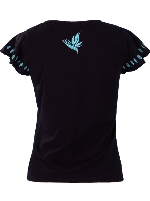 - Frilled sleeve T-shirt with Bird of Paradise & Butterfly embroidery