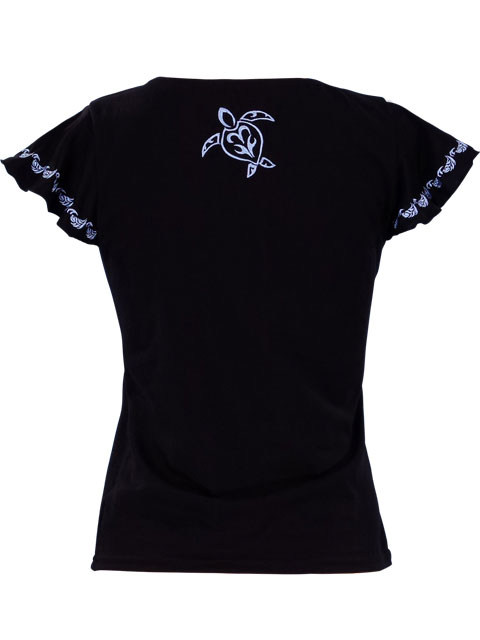 - Frilled sleeve with honu embroidery