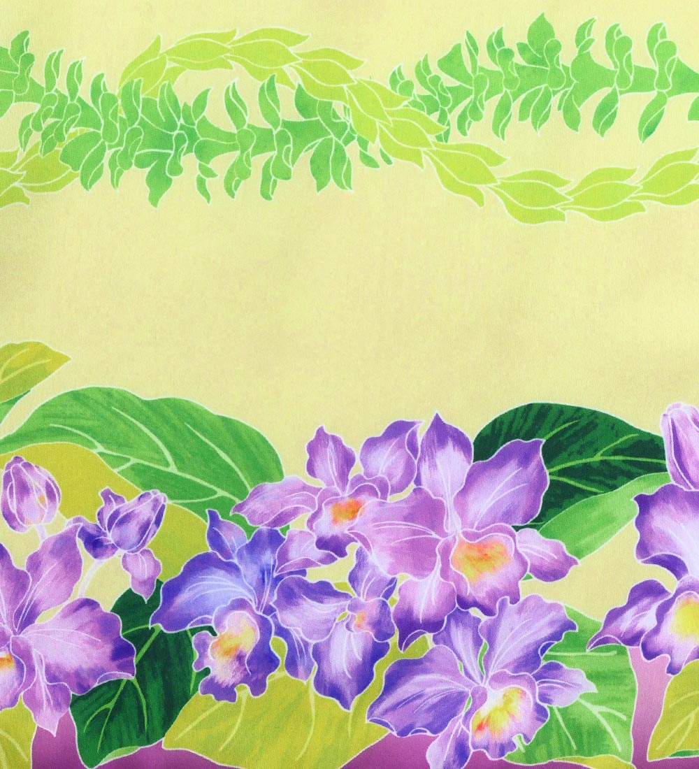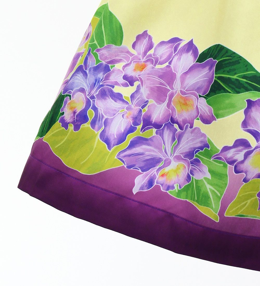 - Hula Shantung Pa'u Skirt with Cattleya Lei Print / Luxury Collection / Red Purple /J3227rdpu