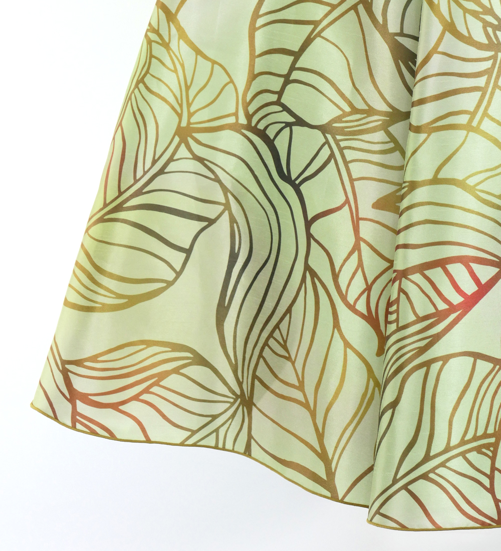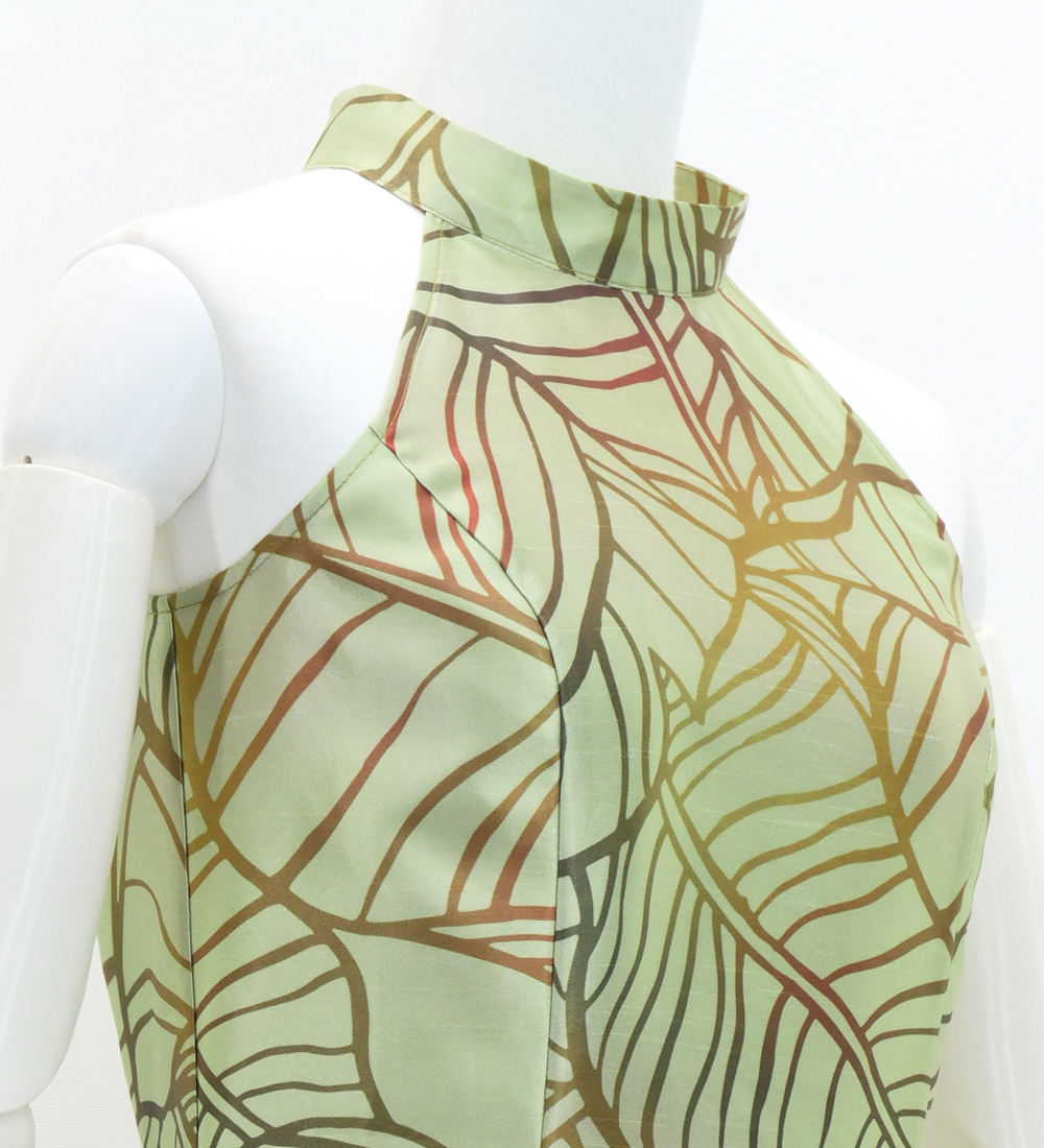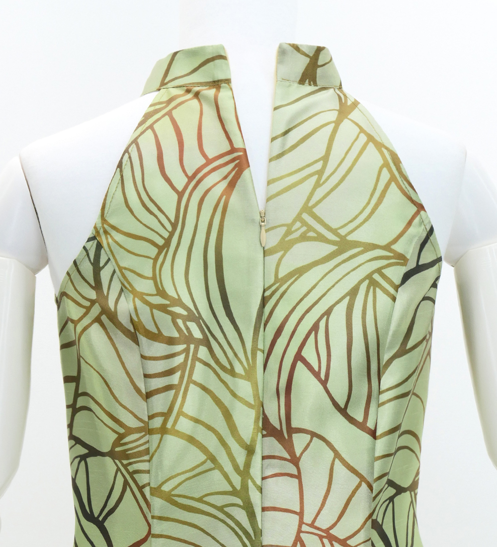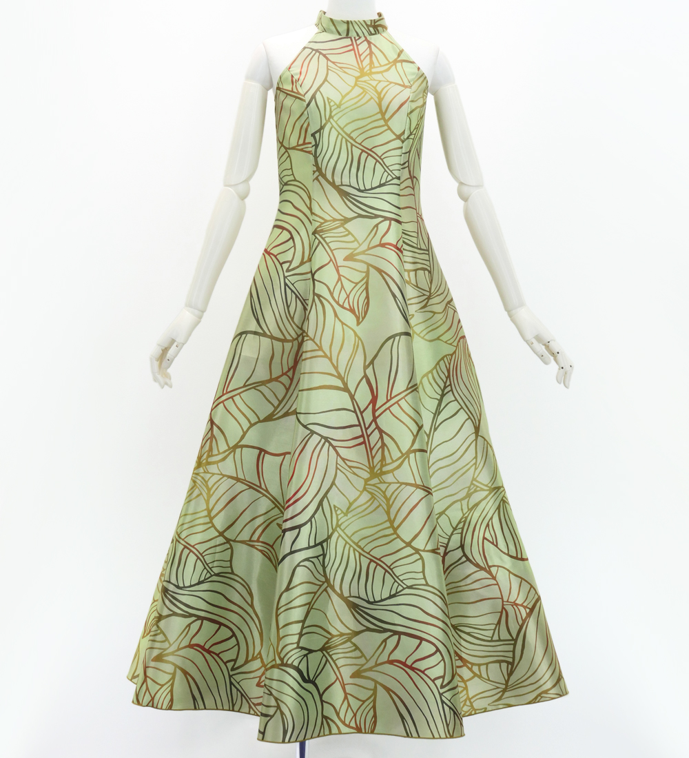 OVERVIEW: - Hula Long Banana Leaf Dress with Shantung