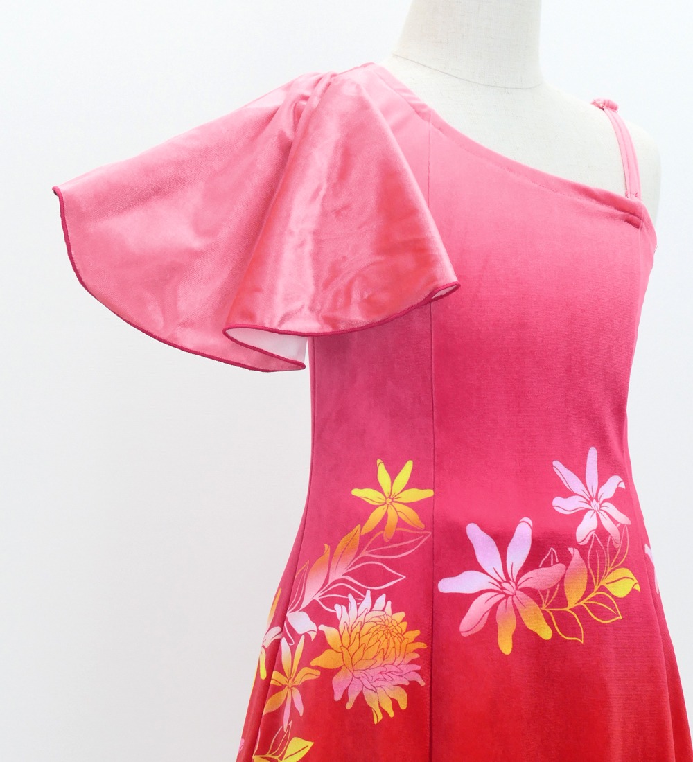 -Kids One Shoulder Long Frill sleeve Dress with Protea & tiare