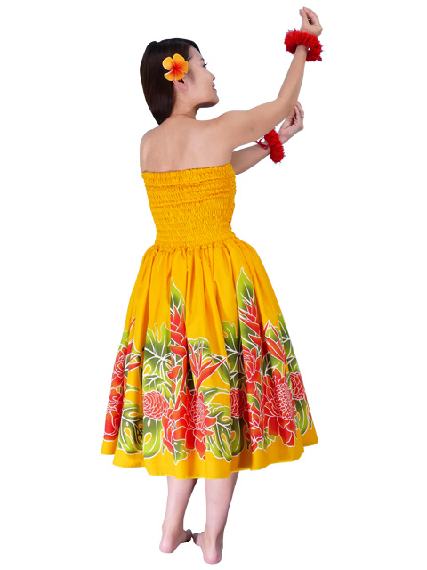 - Hula Midi Dress with Torch Ginger Print / Yellow