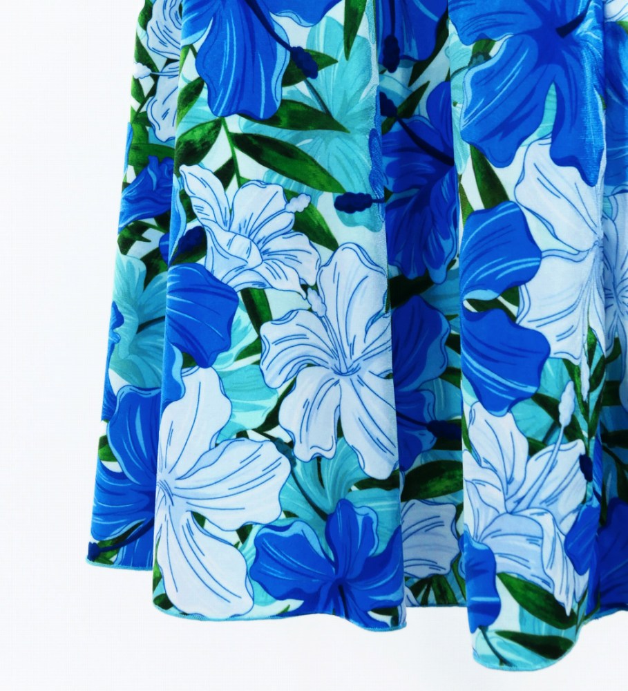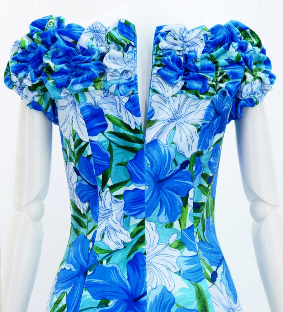 - Hula Long Dress with Hibiscus Print / Blue / Luxury Collection