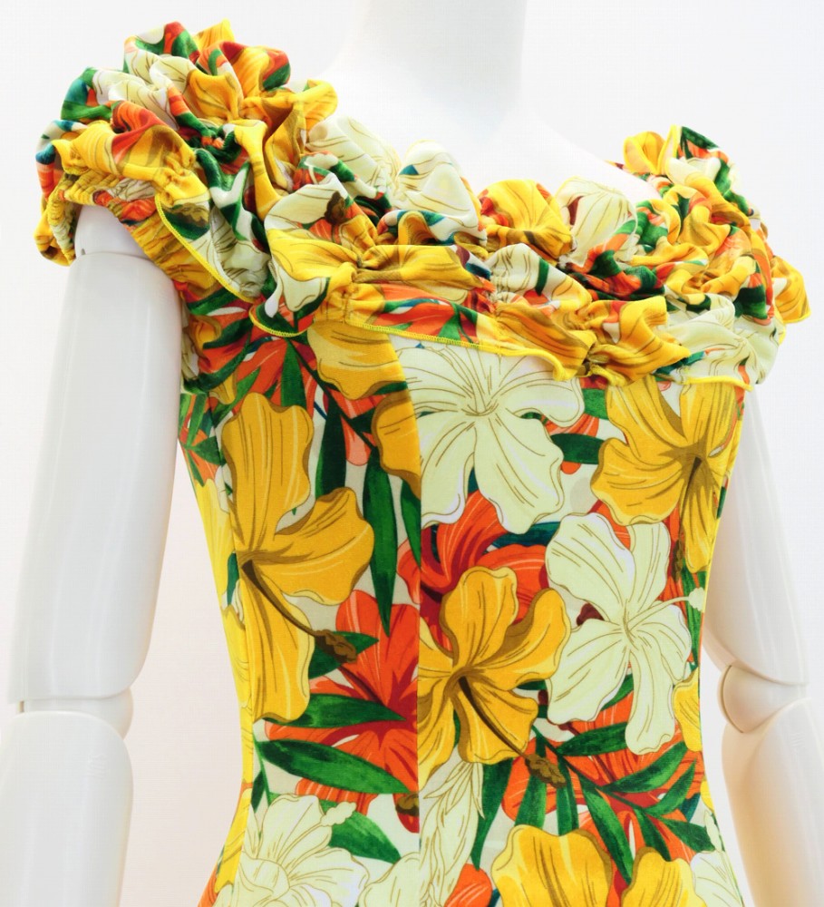 - Hula Long Dress with Hibiscus Print / yellow/ Luxury Collection