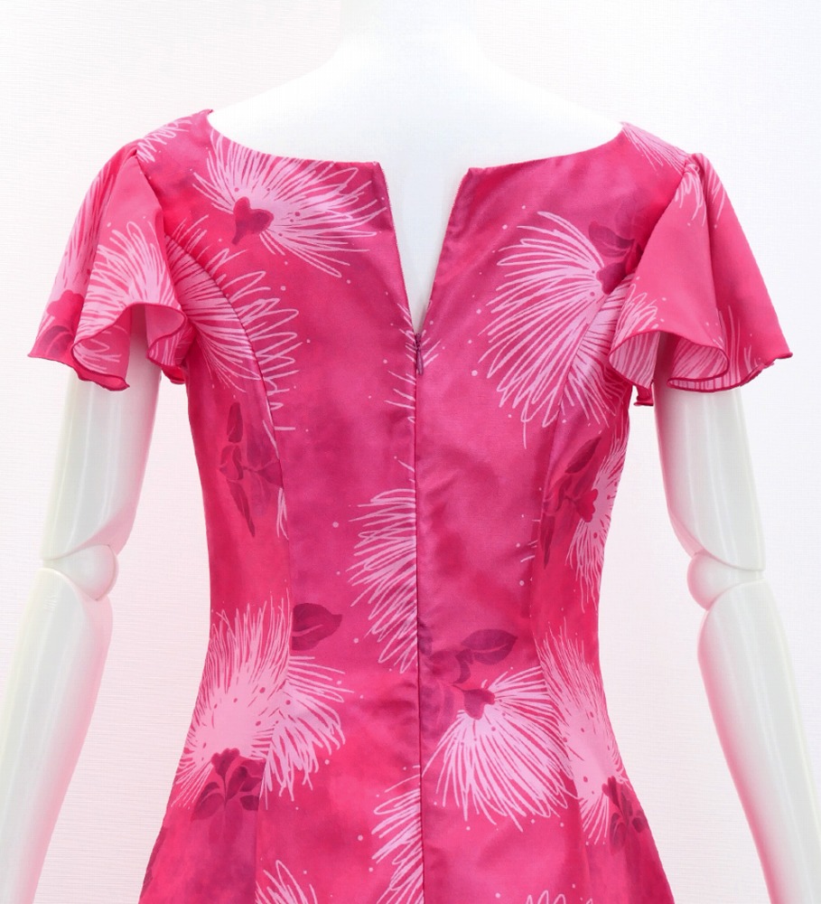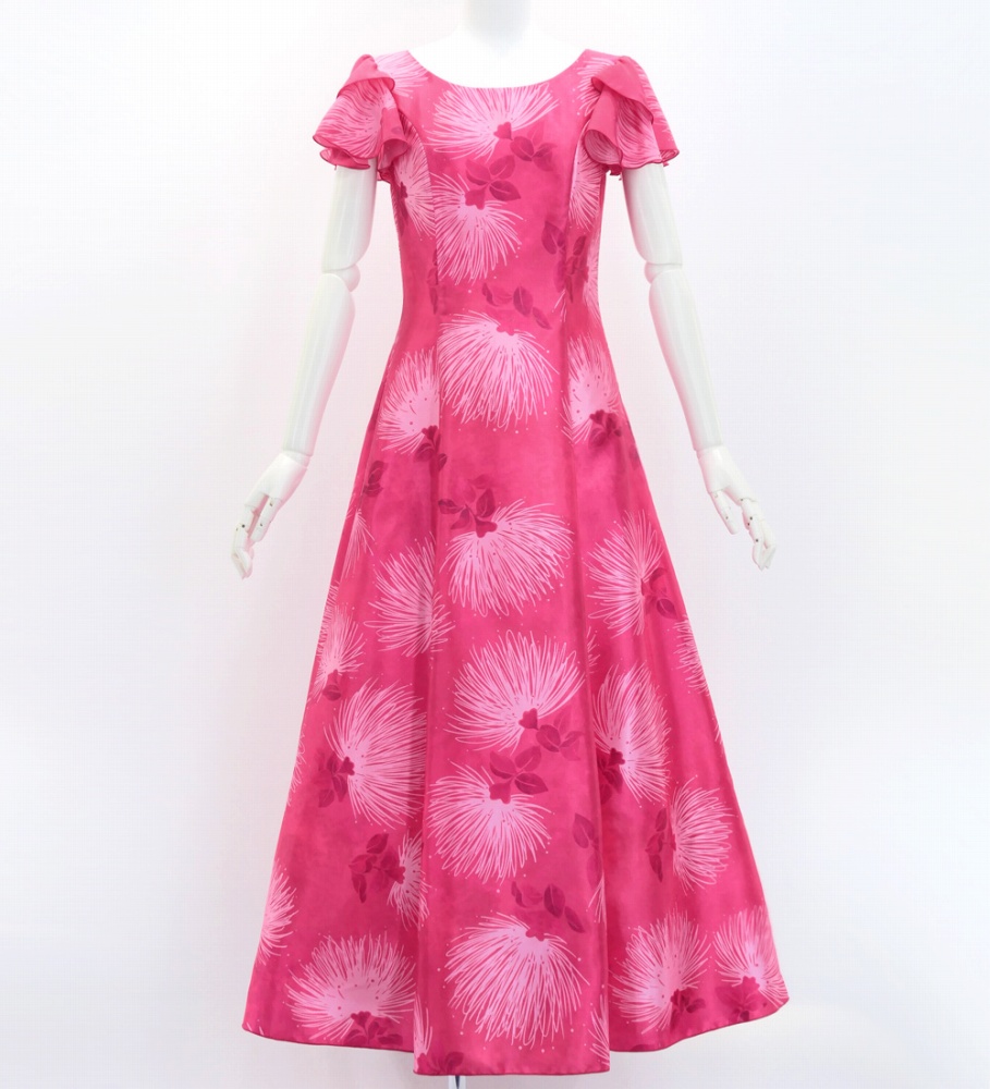 - Hula Long Dress with Lehua Print / Pink / Luxury Collection /
