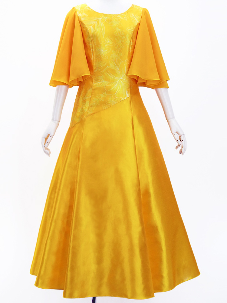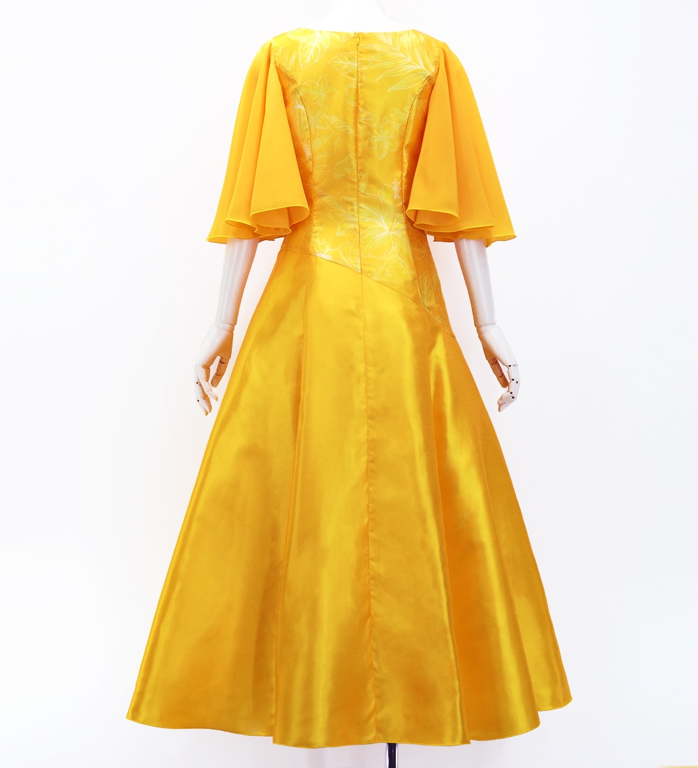 Hula Long Dress with Hibiscus Print / Luxury Collection / Dark Yellow / J3062dye