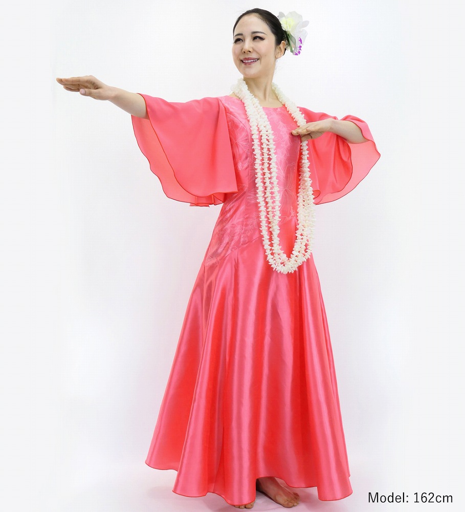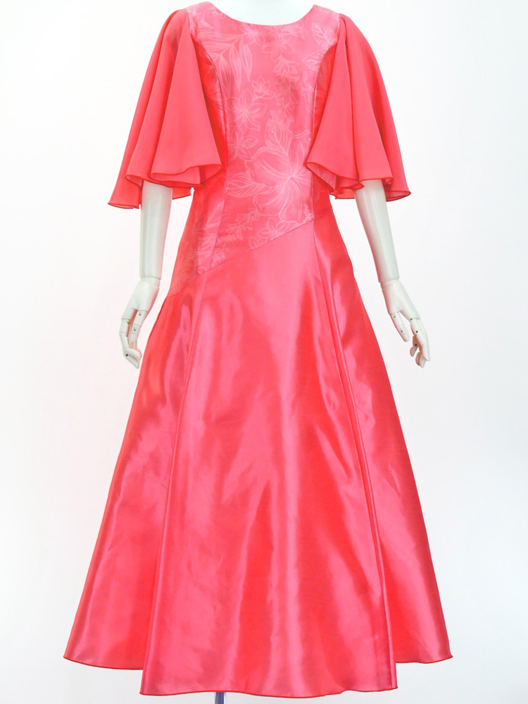 Hula Long Dress with Hibiscus Print / Luxury Collection / Salmon Pink / J3062spi
