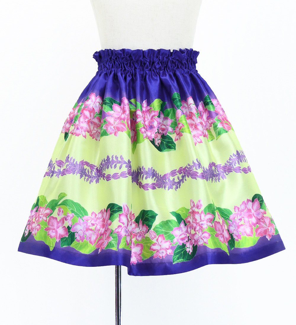 - Hula Kids Shantung Pa'u Skirt with Cattleya Lei Print / Luxury Collection / Jp177pu