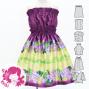 - Hula Kids Shantung Pa'u Skirt with Cattleya Lei Print / Luxury Collection / Jp177rdpu