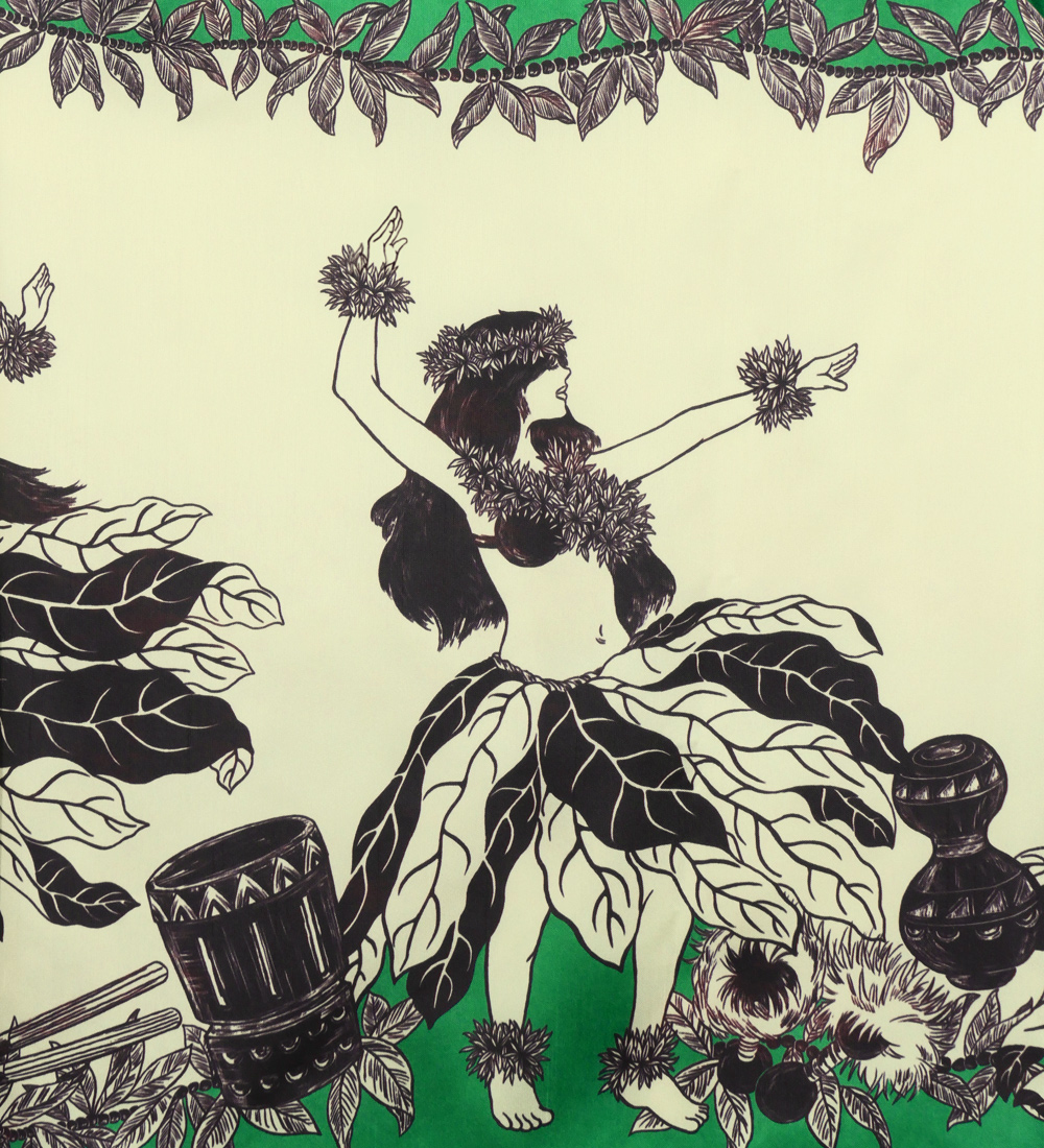 - Hula Shantung Pa'u Skirt with Hula Gril Print / Luxury Collection / J3078gr