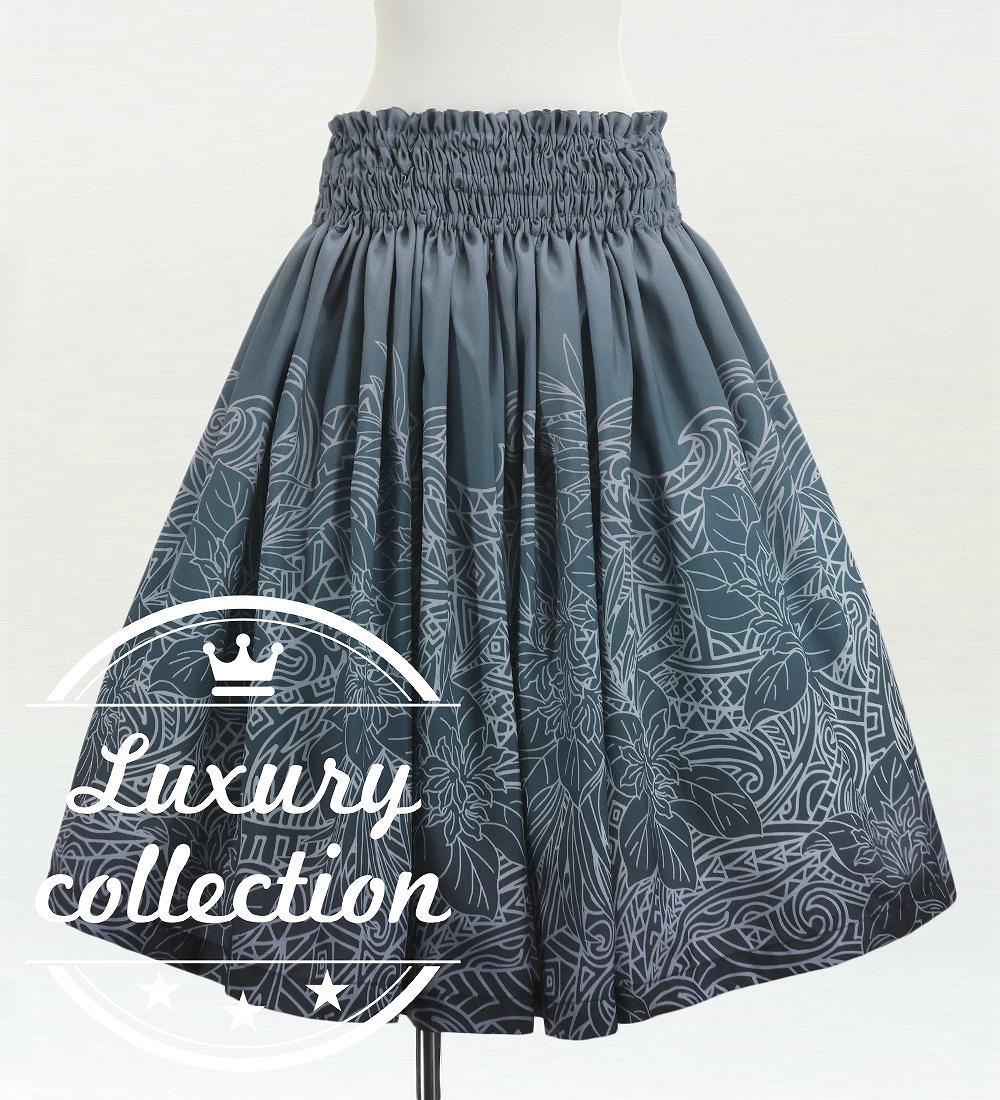 - Hula Shantung Pa'u Skirt with Monstera & Kahiko Print / Luxury Collection / J3258-2