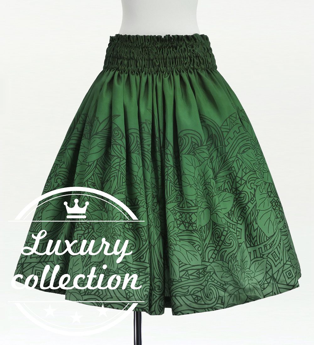 - Hula Shantung Pa'u Skirt with Monstera & Kahiko Print / Luxury Collection / J3258-5