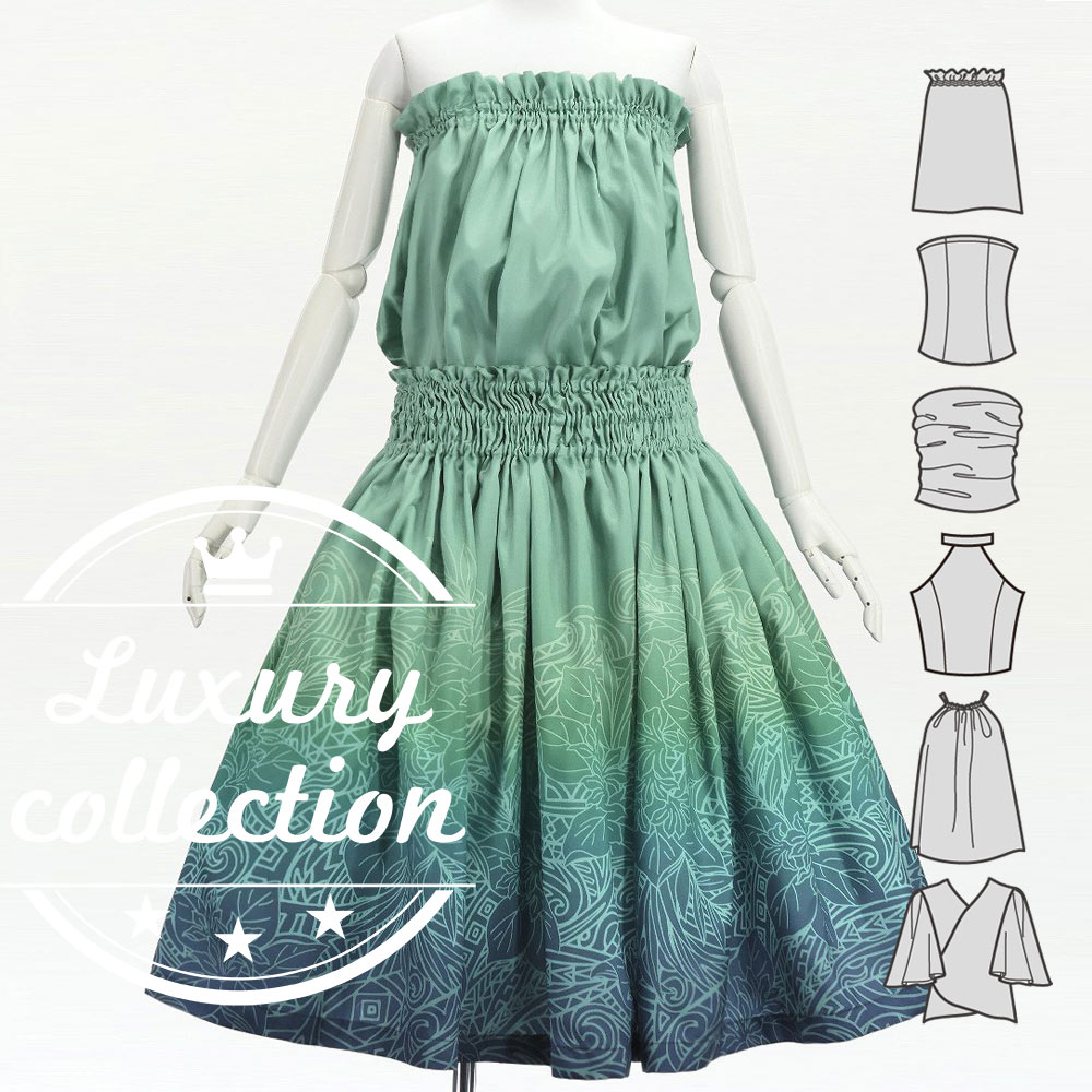 - Hula Blouse & Pa'u Set-Up with Monstera & Kahiko Print / Luxury Collection / J3260-7