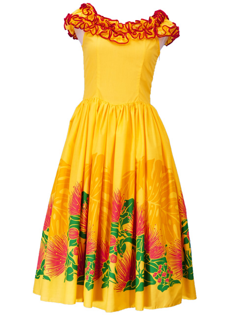 - Hula Midi Dress with Lehua Print / Yellow