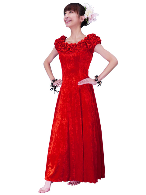 - Hula Off Shoulder Dress with Crushed Velvet / Red