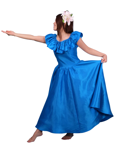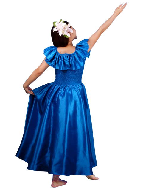 - Hula Frilled Collar Long Satin Dress / Blue