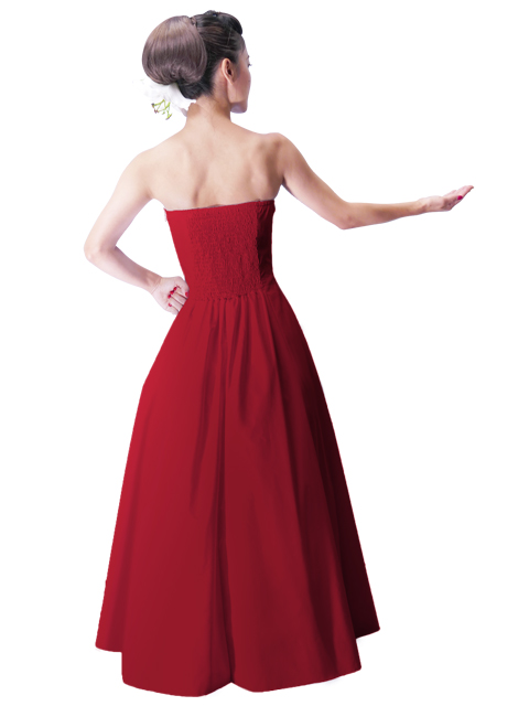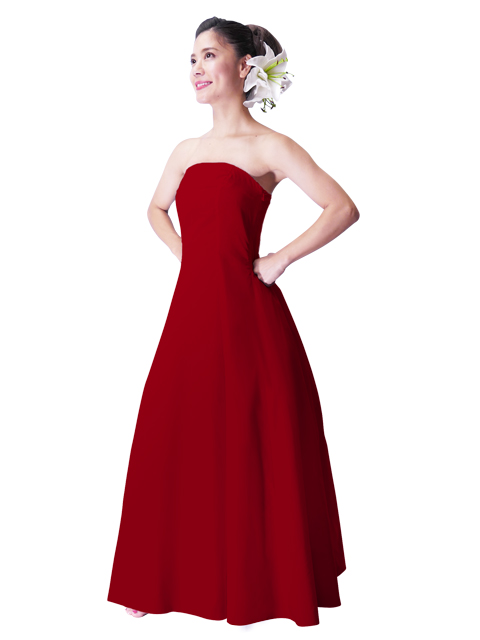 - Hula Strapless Dress with Hawaiian Solid Fabric / Red
