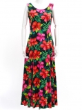 Hula Long Dress with Hawaiian Flower Print / Luxury Collection / Green / J3176gr