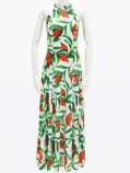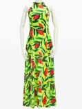 Hula Long Koshibo Dress with Banana Leaf Print / Luxury Collection / Green / J3223-3