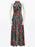 Hula Long Dress with Heliconia Print / Luxury Collection / Black / J2687bk