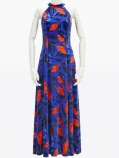 Hula Long Dress with Heliconia Print / Luxury Collection / Blue / J2687bl