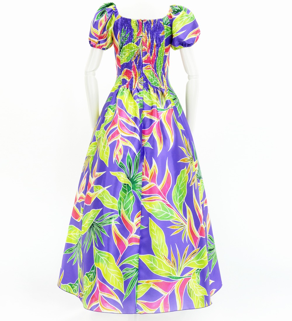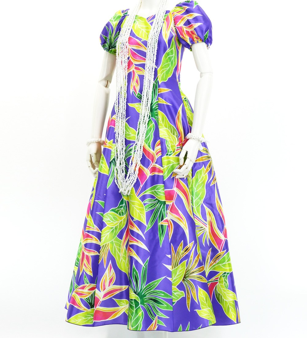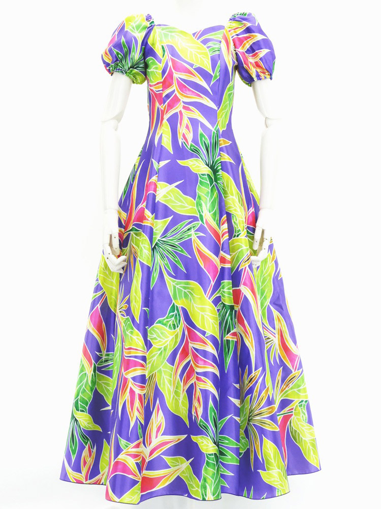 -Hula Long Dress with Heliconia Print / Luxury Collection / Purple / J2687pu
