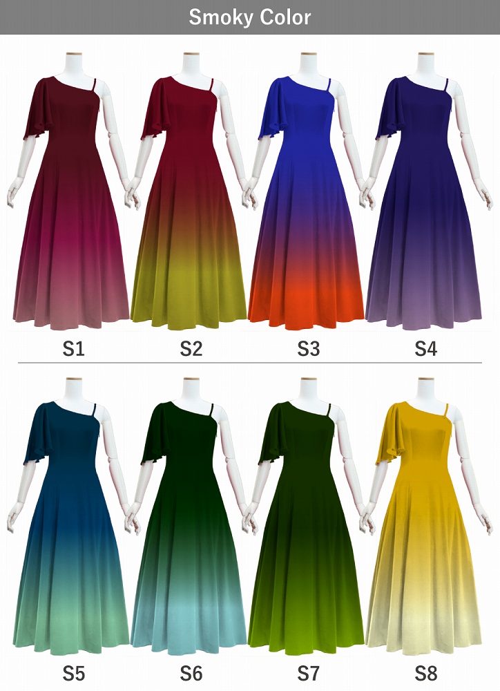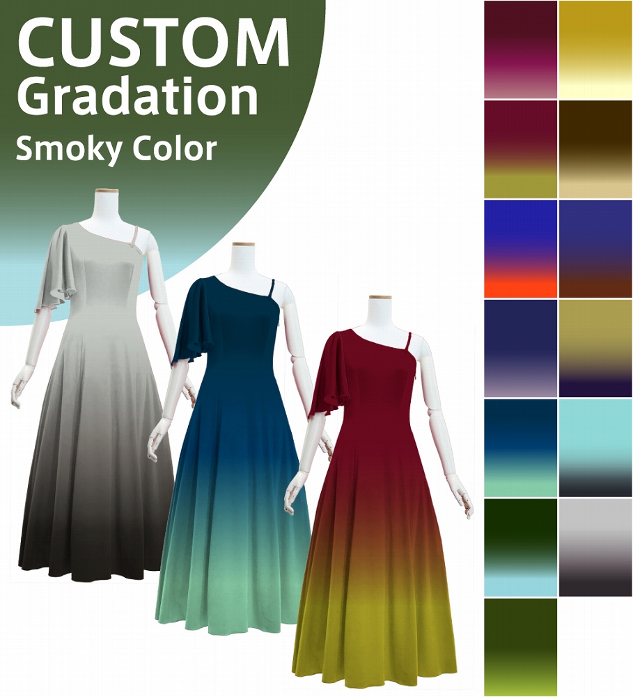 - [Gradation] Custom One Shoulder Flare sleeve Long Dress/ JC90-gradation-S