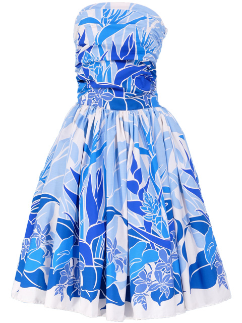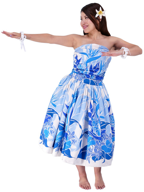 --Hula Drape Midi Dress with Bird of Paradise / Blue