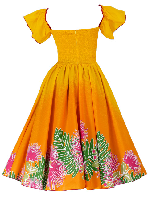 - Hula Dress with Lehua Print Decorative Sleeves attached / Yellow