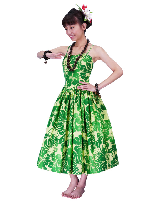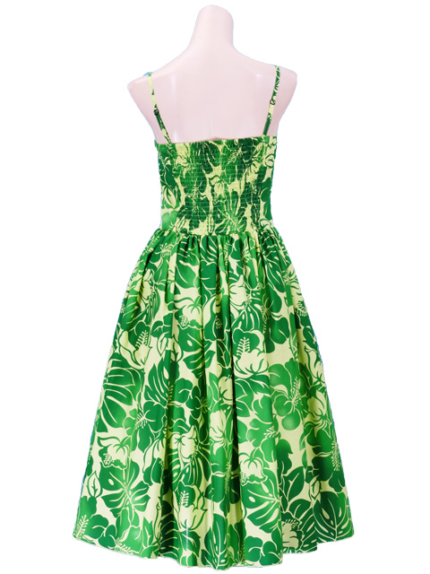- Hula Midi Dress with Hibiscus Print / Green