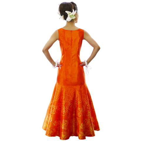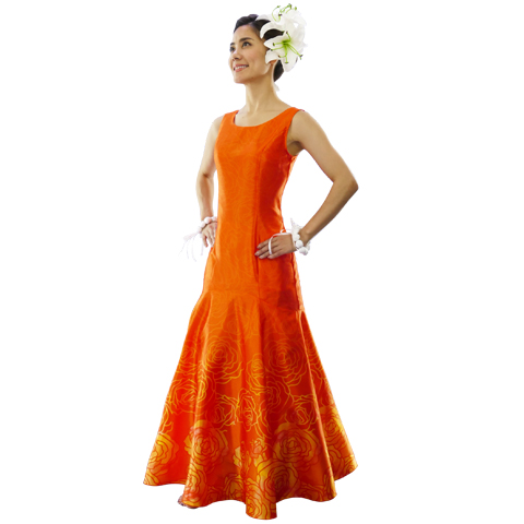 - Hula Long Dress with Lokelani Print / Orange / Luxury Collection