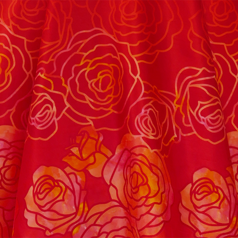 - Hula Long Dress with Lokelani Print / Red / Luxury Collection