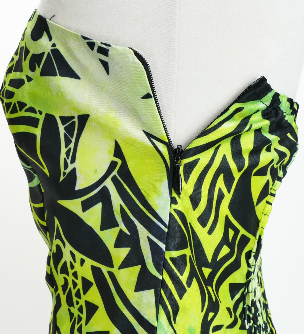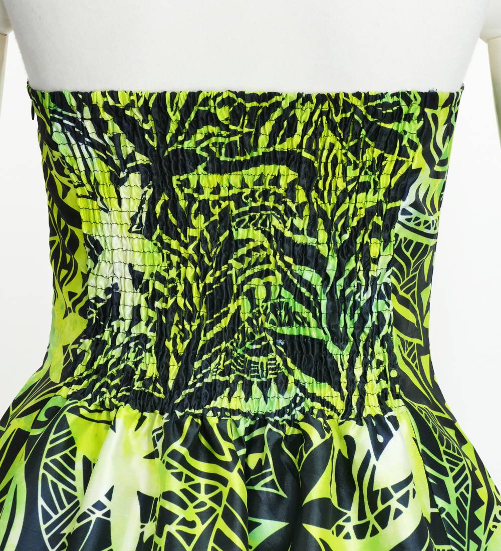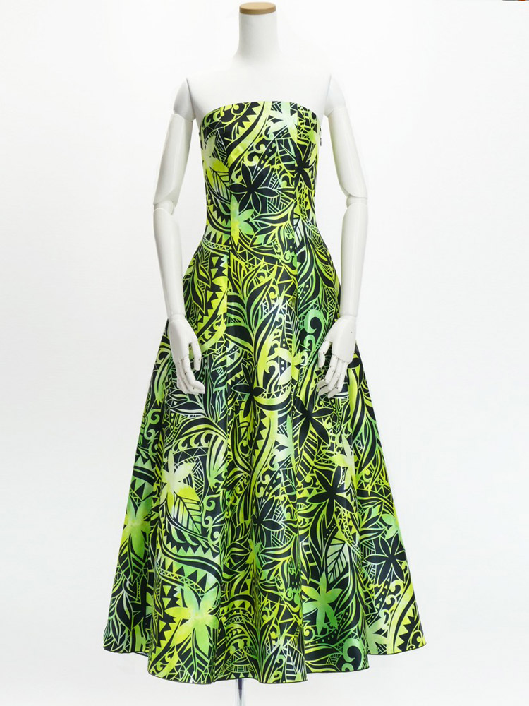 -Hula Long Dress with Heliconia Print / Luxury Collection / Yellow Green / J2679ye