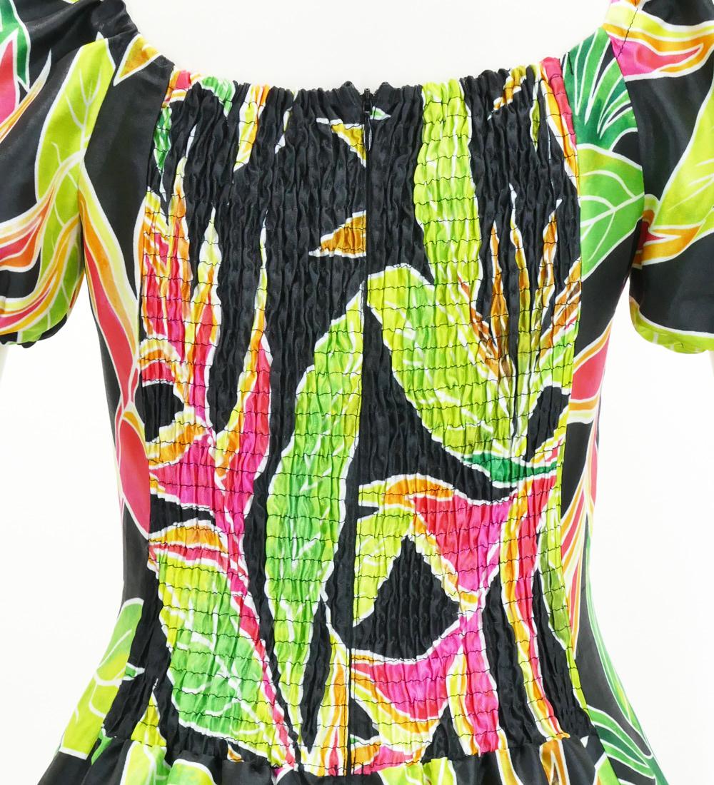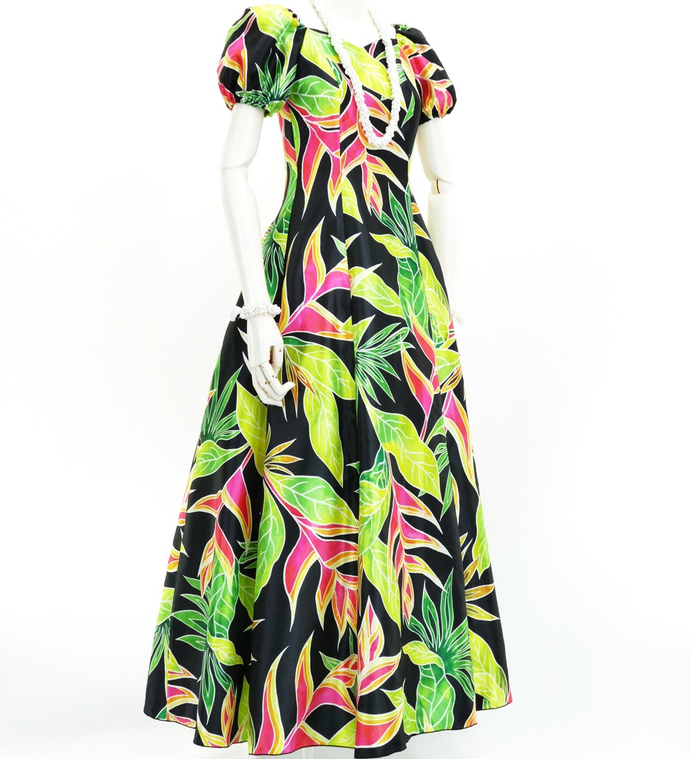 -Hula Long Dress with Heliconia Print / Luxury Collection / Black / J2687bk