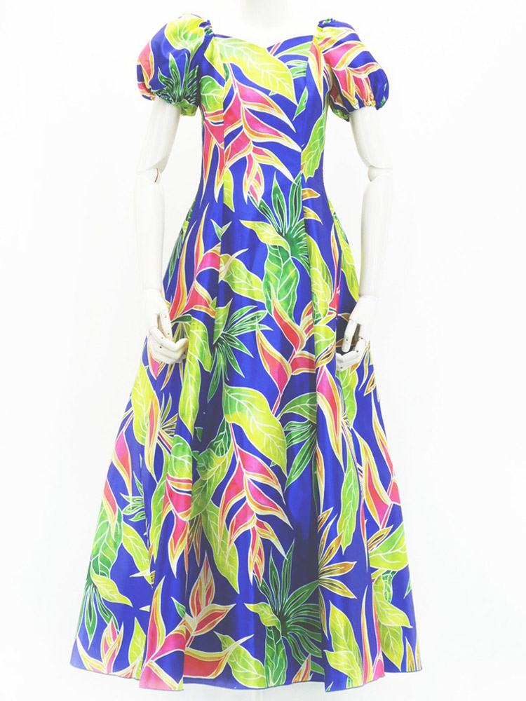 -Hula Long Dress with Heliconia Print / Luxury Collection / Blue / J2687bl