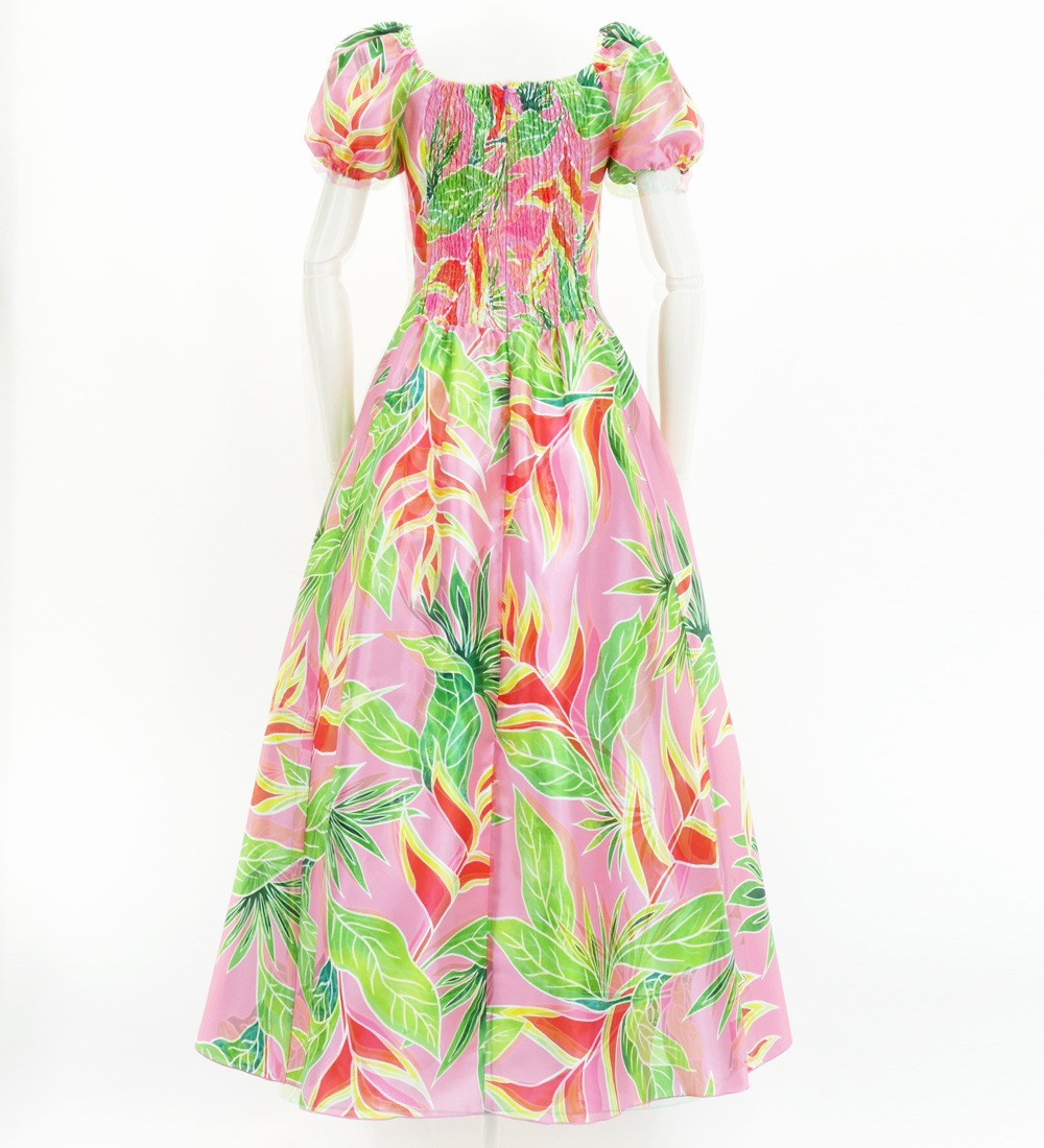 -Hula Long Dress with Heliconia Print / Luxury Collection / Pink / J2687pi