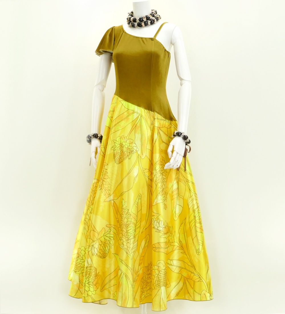 - Hula One Shoulder Dress with Velvet & Ginger