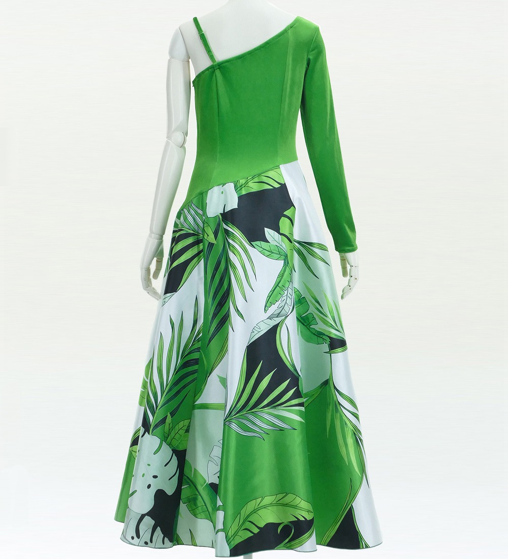 - Hula One Shoulder Dress with Modern Leaf