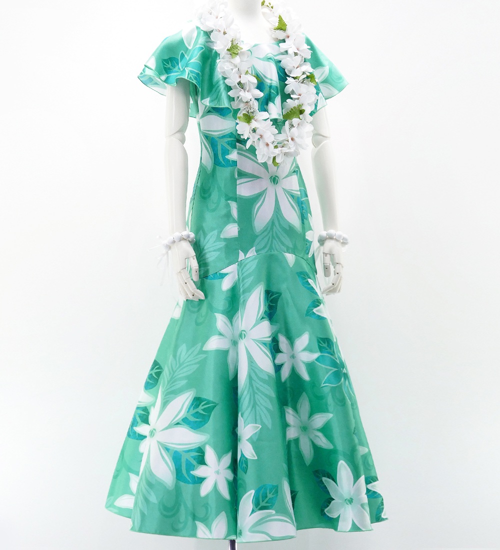 - Hula Long Dress withTiarePrint / Turquoise Blue / Luxury Collection /