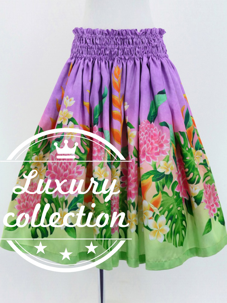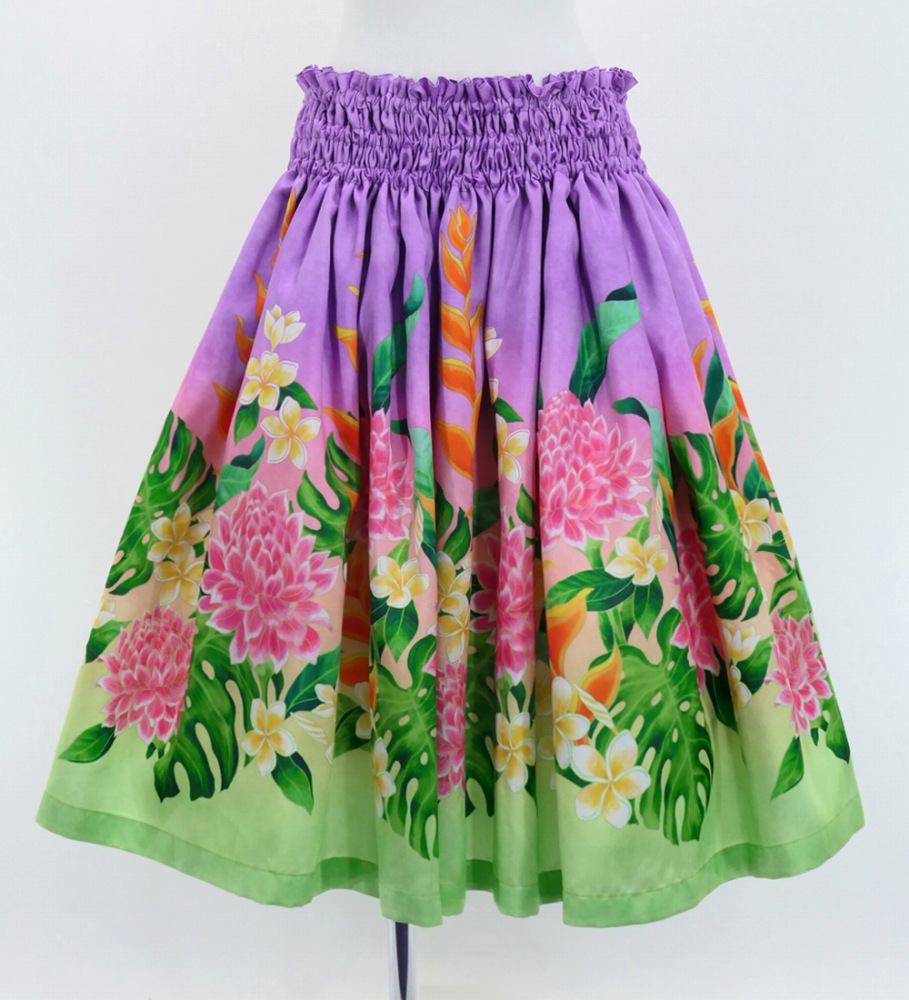 - Hula Shantung Pa'u Skirt with Torch Ginger & Heliconia Print / Luxury Collection / J3037-7