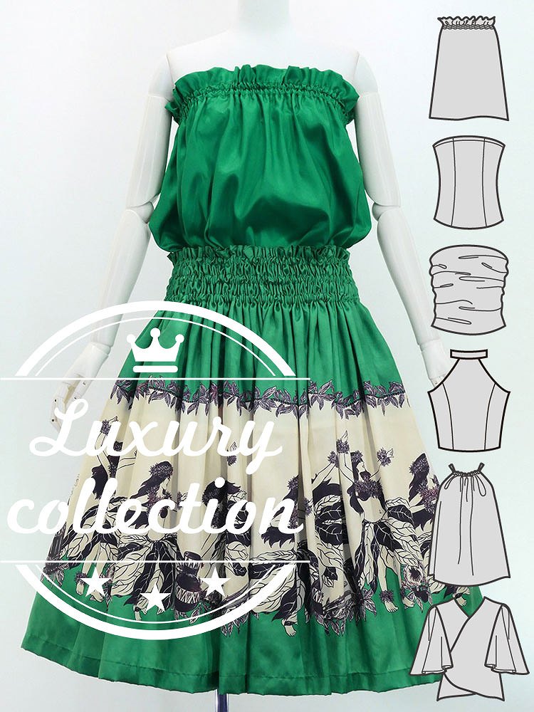 - Hula Blouse & Pa'u Set-Up with Red Ginger & Strelitzia Print / Luxury Collection / J3096gr