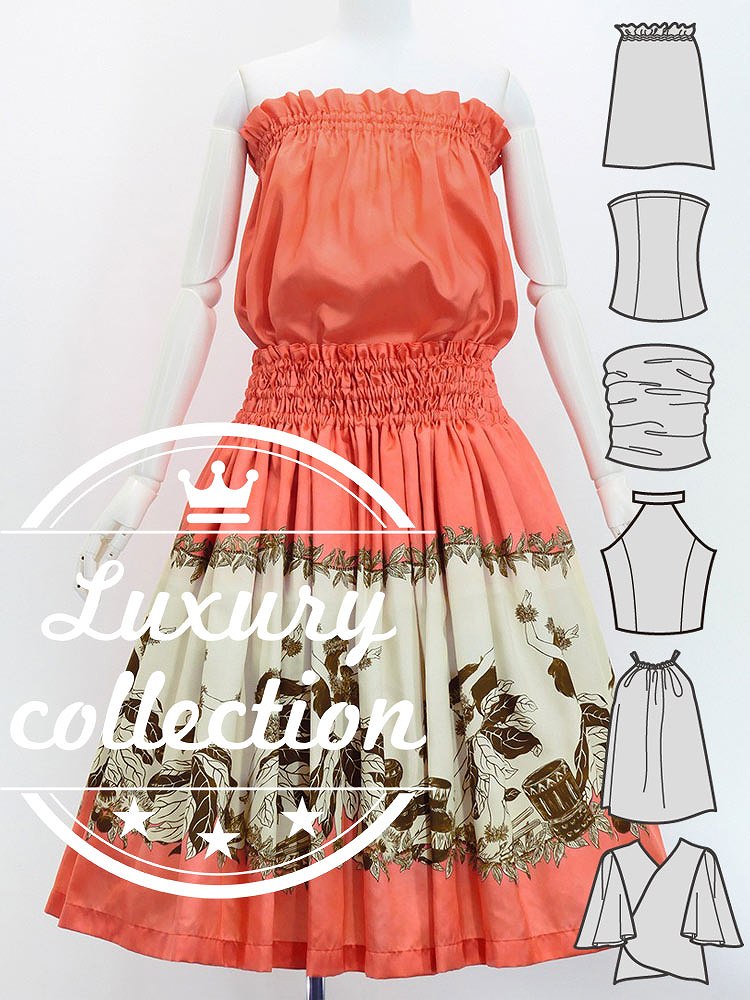 - Hula Blouse & Pa'u Set-Up with Red Ginger & Strelitzia Print / Luxury Collection / J3096or