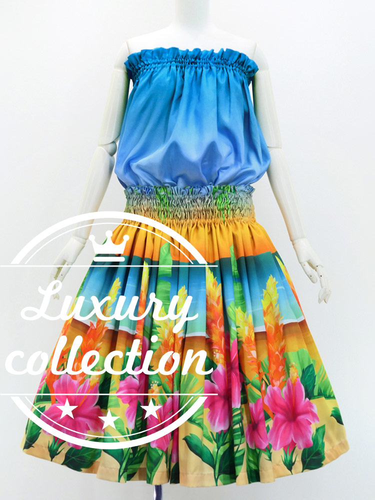 - Hula Shantung Tube Top & Pa'u Set-Up with Hibiscus Print / Luxury Collection / J3099-8