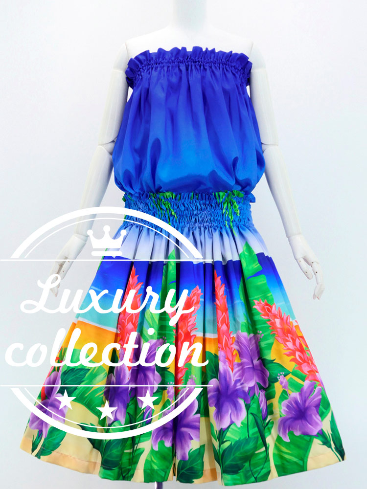 - Hula Shantung Tube Top & Pa'u Set-Up with Hibiscus Print / Luxury Collection / J3099-6