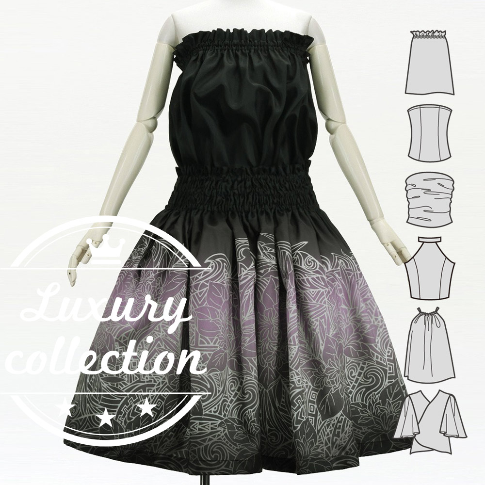 - Hula Blouse & Pa'u Set-Up with Monstera & Kahiko Print / Luxury Collection / J3260-8