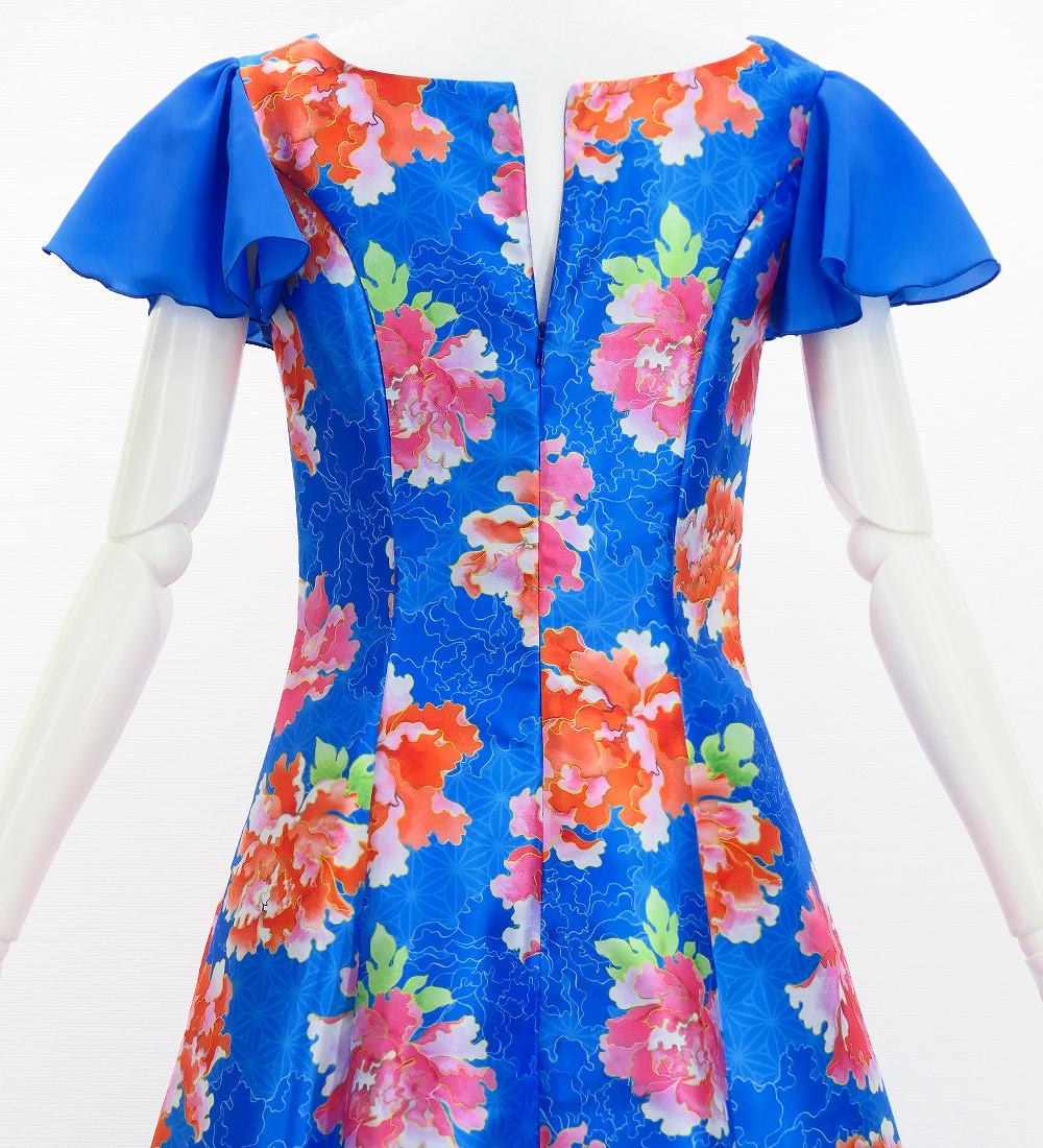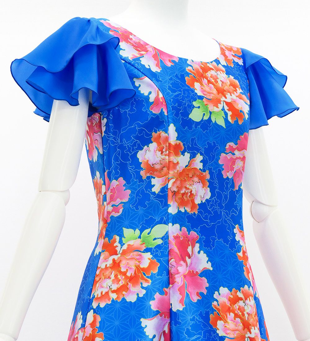 OVERVIEW: -Long Dress / Japan Fabric -Print:Peony -color: Blue