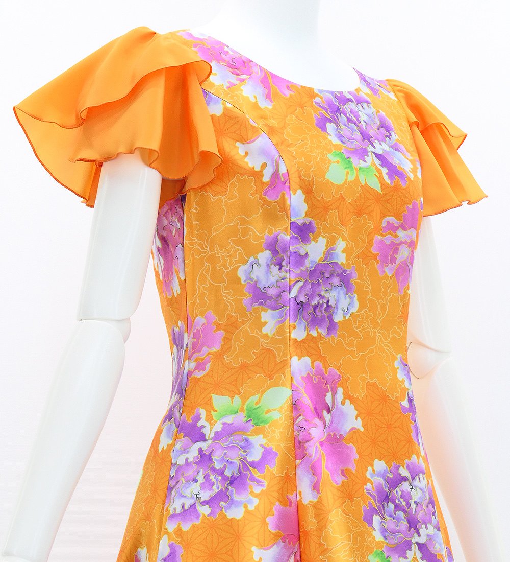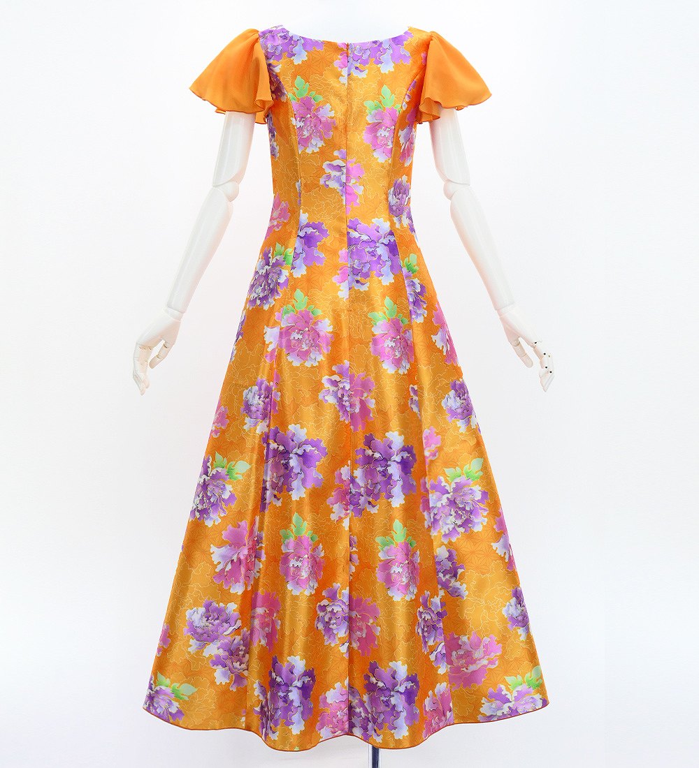 OVERVIEW: -Long Dress / Japan Fabric -Print:Peony -color: Orange
