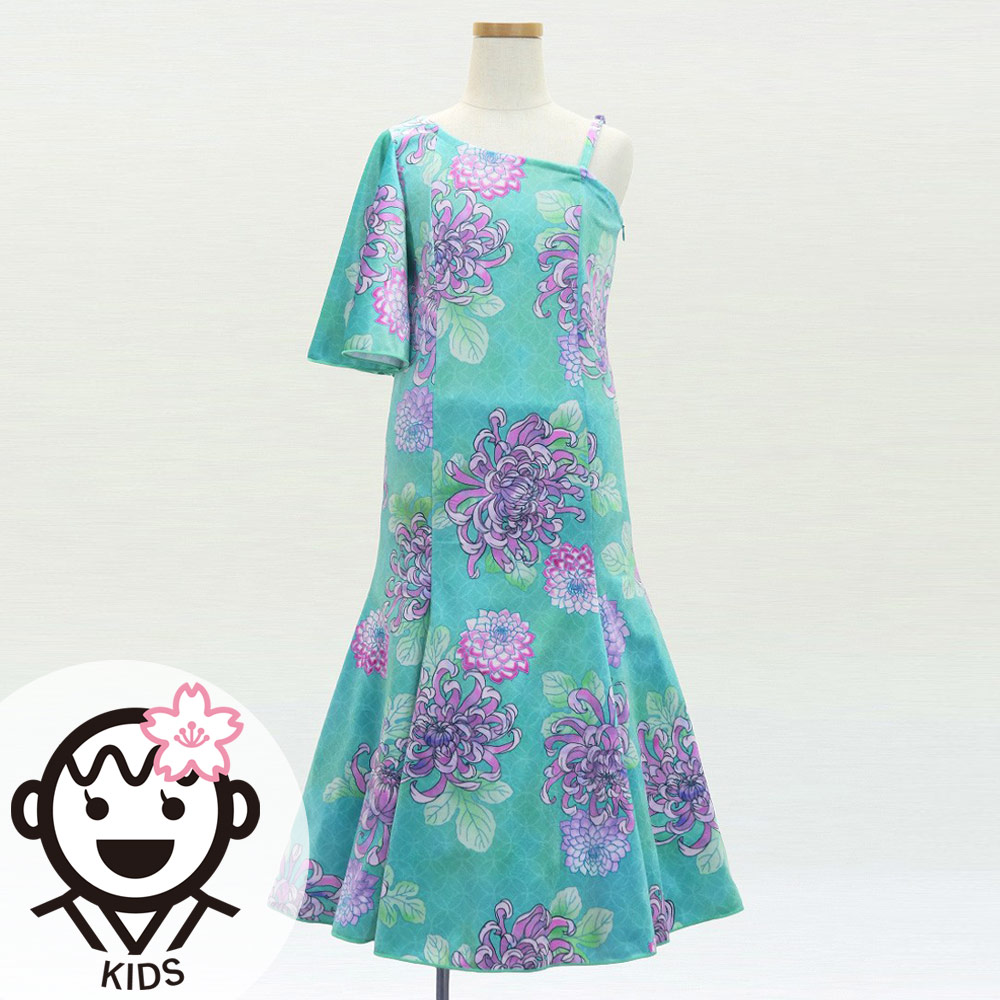 OVERVIEW: -Kids One Shoulder Frill Sleeve Long Dress / Japan Fabric -color:Light Blue