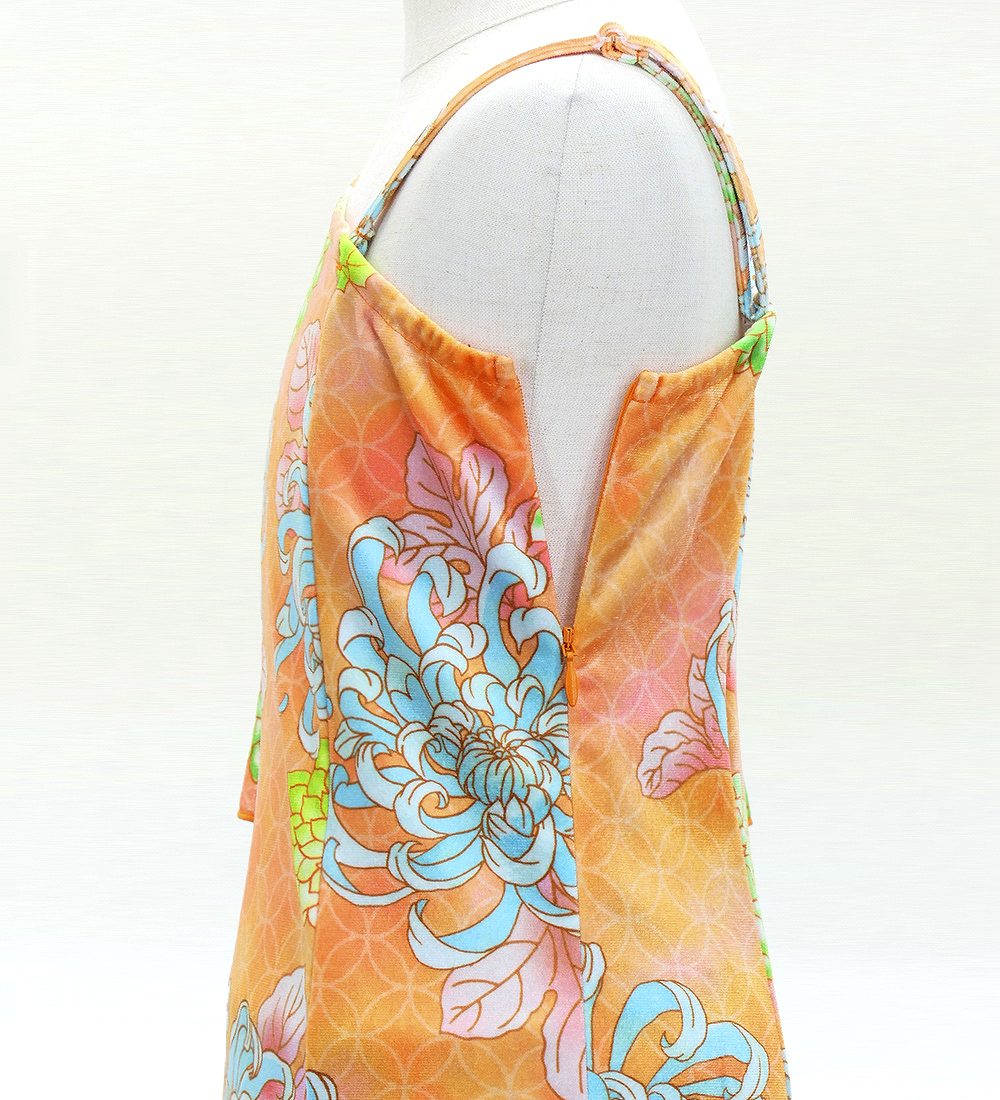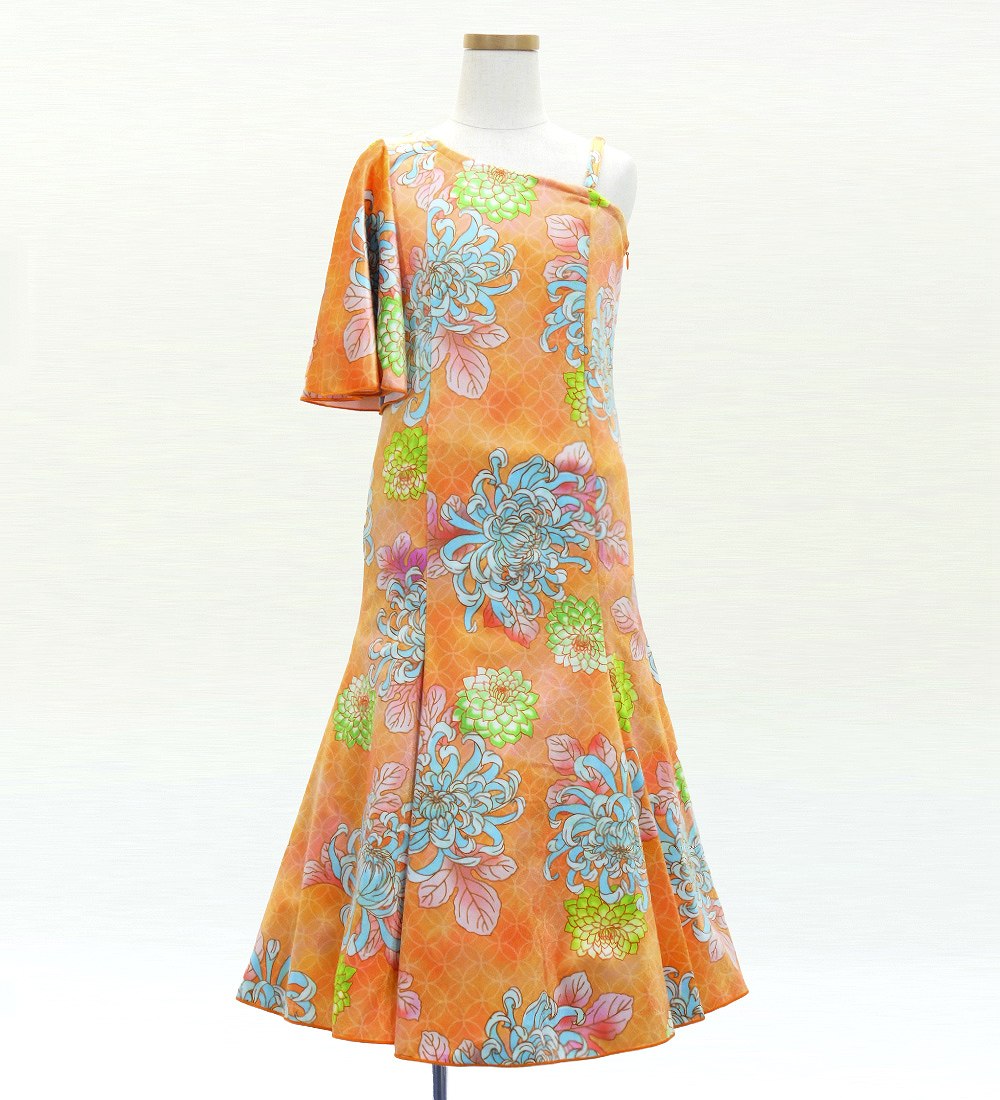 OVERVIEW: -Kids One Shoulder Frill Sleeve Long Dress / Japan Fabric -color:Orange