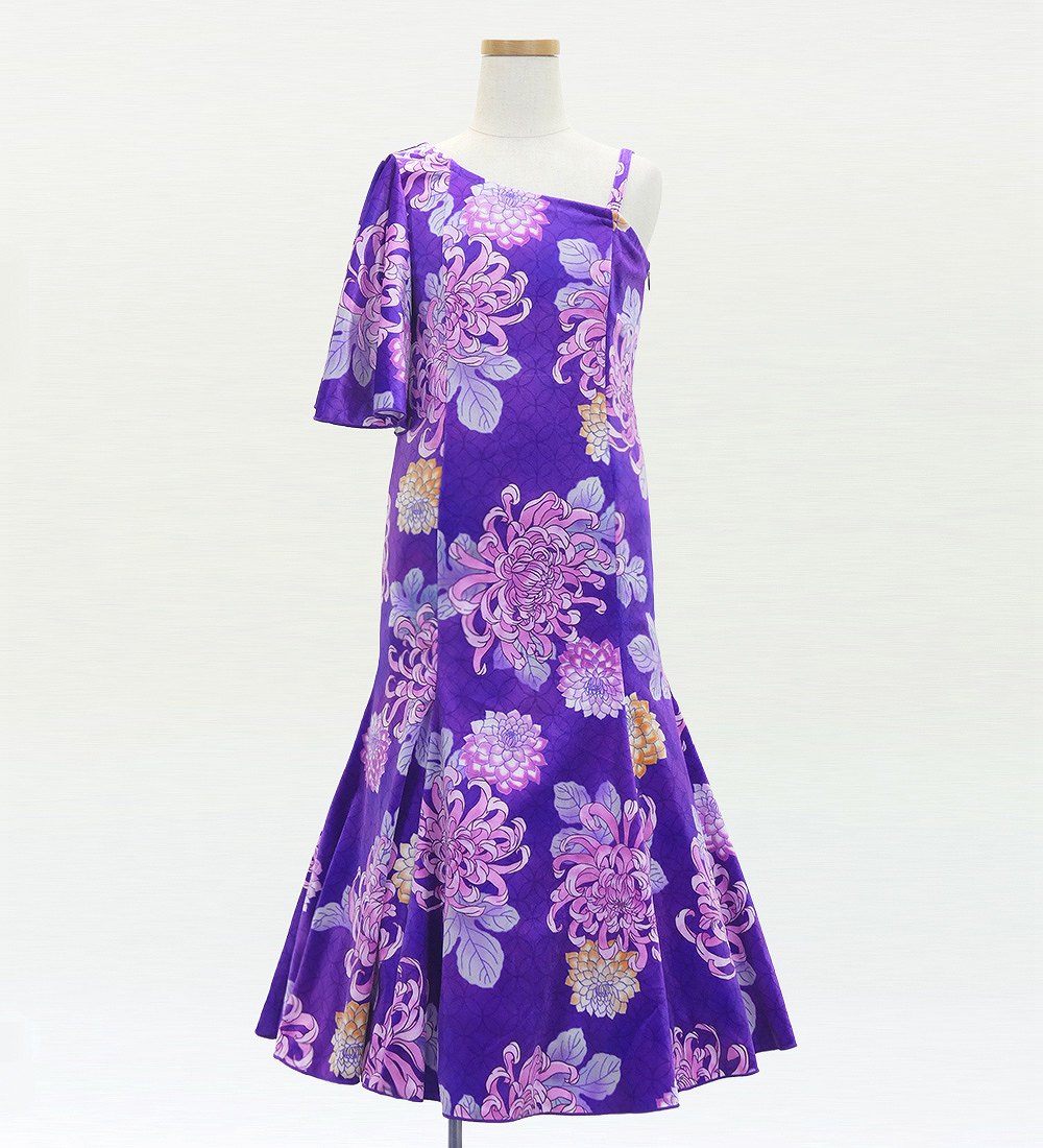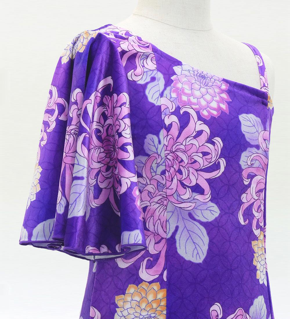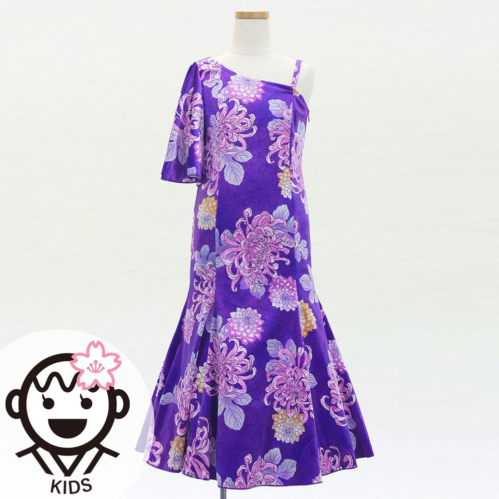 OVERVIEW: -Kids One Shoulder Frill Sleeve Long Dress / Japan Fabric -color:Purple